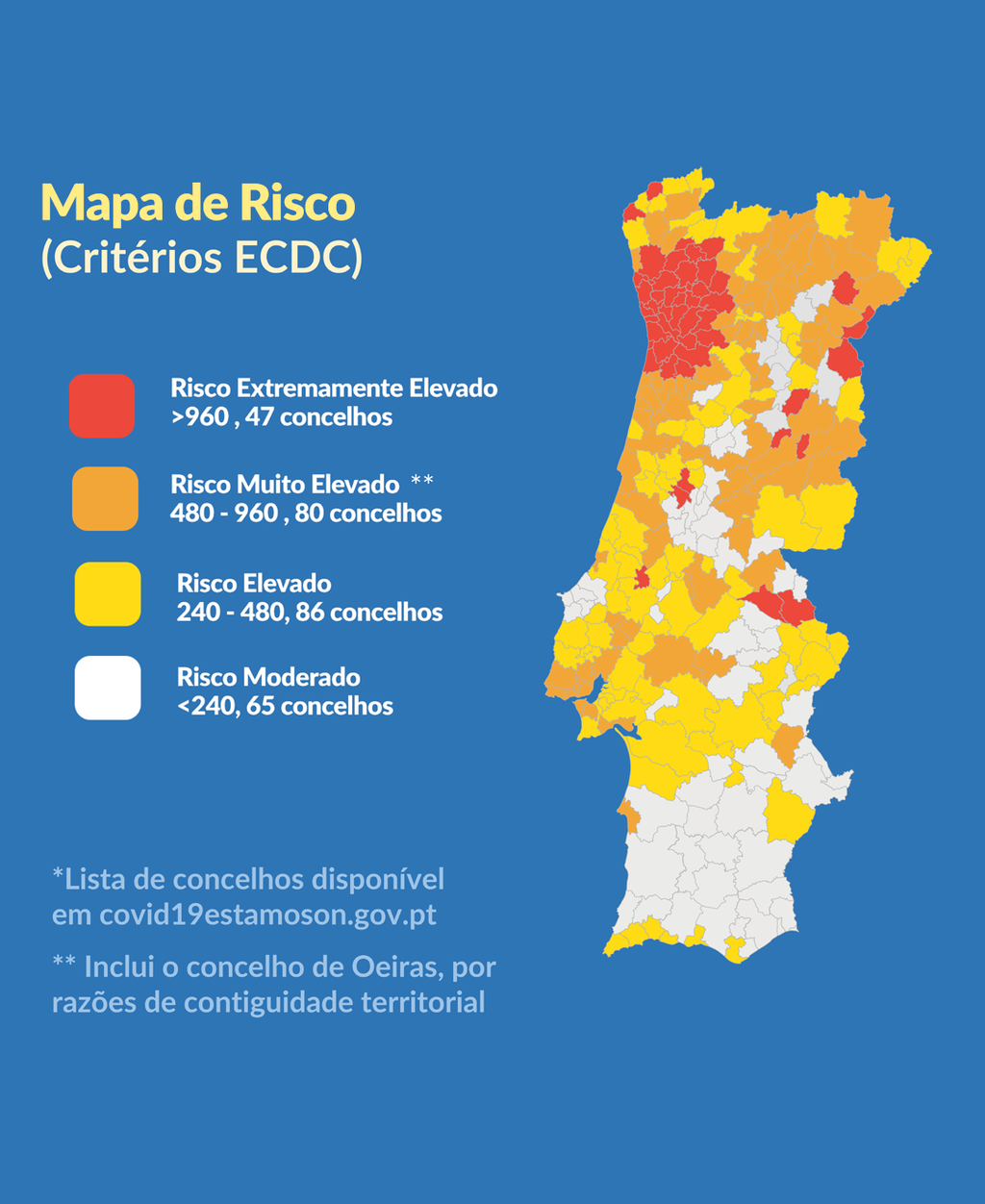 - Nos concelhos de risco elevado, ou seja, que registem entre 240 a 480 novos casos por 100.000 habitantes nos últimos 14 dias, os restaurantes têm de fechar portas até às 22h30. Ainda assim, aqueles que façam entrega de refeições ao domicílio podem manter-se abertos até à 1h, mas sem receber clientes;