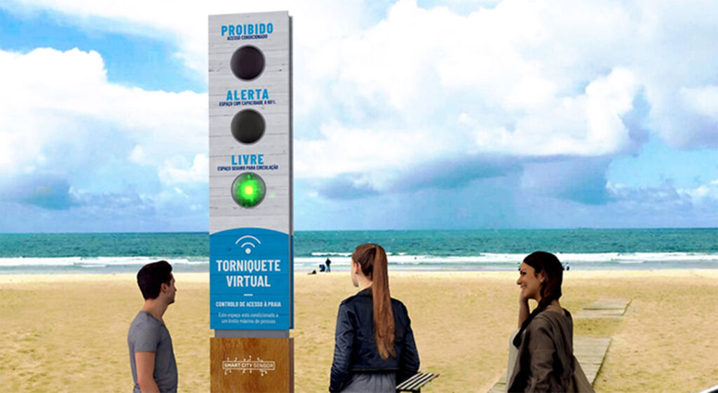 Distancia mínima de 1,5 metros entre pessoas (exceto se forem do mesmo grupo); O estado de ocupação das praias será feito através de semáforos: verde para ocupação baixa (1/3), amarelo para ocupação elevada (2/3) e vermelho para ocupação plena (3/3); O estado de ocupação das praias poderá ainda ser consultado, em tempo real, através de uma aplicação para o telemóvel (Info Praia) ou no site da Agência Portuguesa do Ambiente (APA); Podem ser definidos corredores de circulação, paralelos e perpendiculares à linha de costa.